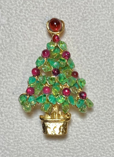 Authentic Swoboda Christmas Tree Brooch ~ Jade, Garnet, Ruby